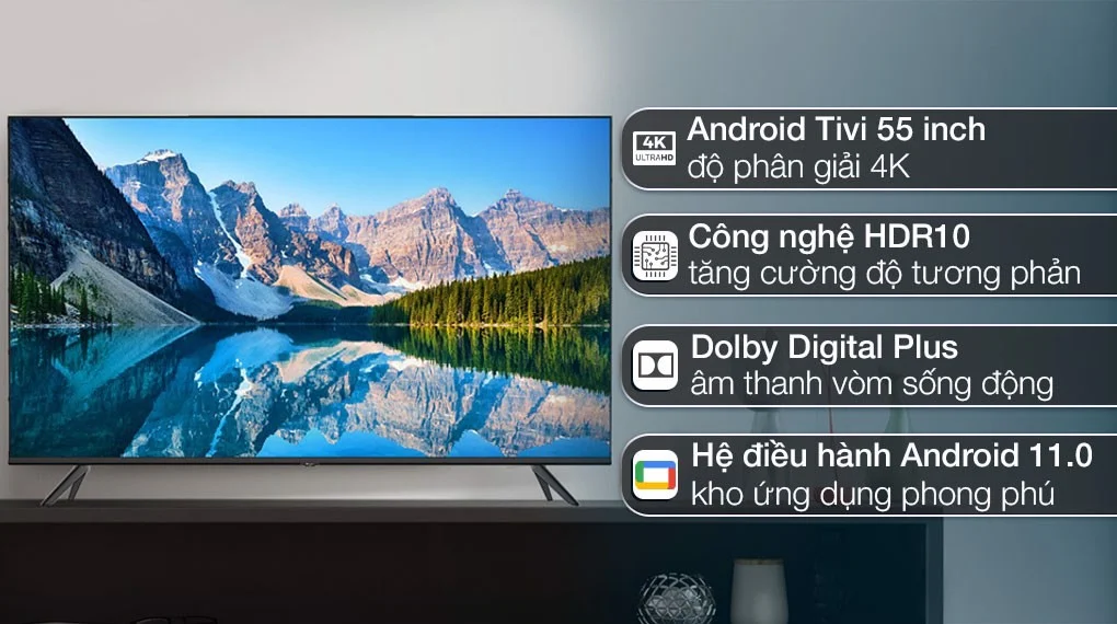 – Tivi có màn hình 55 inch phù hợp cho những không gian vừa như phòng ngủ, phòng khách, phòng làm việc,…