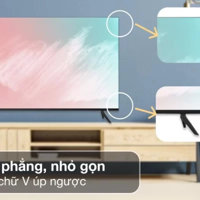 – Chân đế có dạng hình chữ V úp ngược được làm từ chất liệu nhựa nhẹ và bền, giúp cho tivi đứng vững vàng trên kệ tủ hay mặt bàn. Ngoài ra, bạn cũng có thể tháo rời chân đế để treo tường giúp tiết kiệm được không gian.