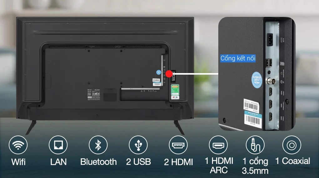 Cổng nhận hình ảnh, âm thanh: | 3 cổng HDMI có 1 cổng HDMI ARC, 1 cổng Composite |