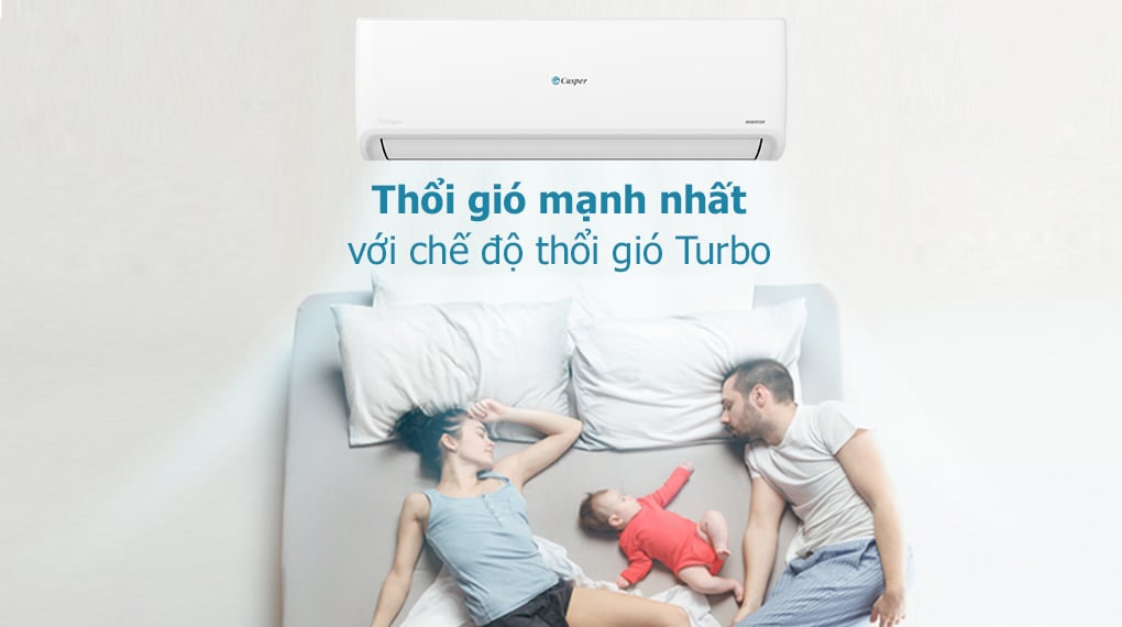 Vào những ngày hè nóng bức khi vừa về đến phòng, thay vì phải chờ đợi lâu để được làm mát thì với mẫu Điều hoà Casper này, bạn sẽ tận hưởng cảm giác mát mẻ trong căn phòng nhanh chóng nhờ chế độ thổi gió Turbo cho luồng không khí thổi ra mạnh nhất.