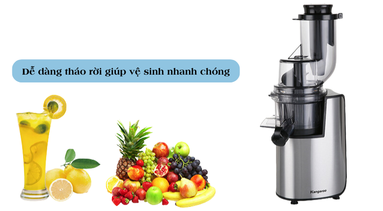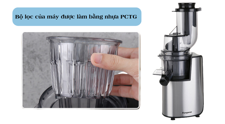 Máy ép chậm Kangaroo được chế tạo với chất lượng cao, thân máy bọc inox cao cấp, ít bám bẩn và có độ bền cao. Điều này đảm bảo máy có thể vận hành lâu dài mà không lo cháy động cơ do quá nhiệt. Máy đáp ứng mọi nhu cầu sử dụng trong gia đình hoặc quán nước.