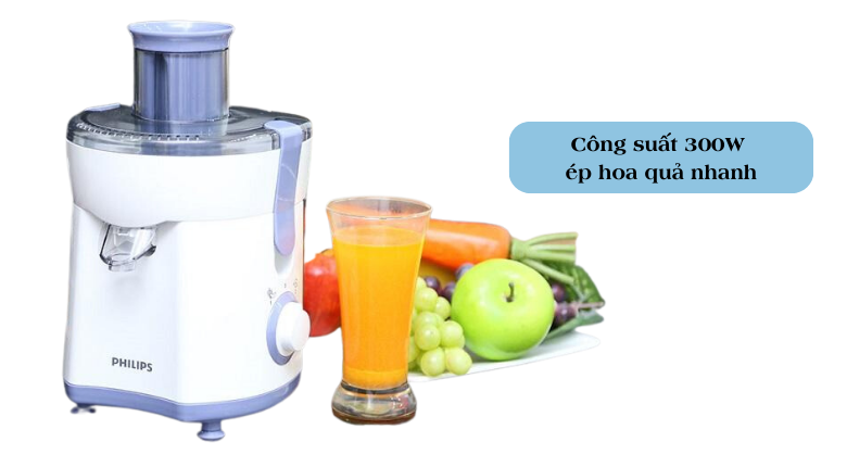 Với công suất 300W, máy ép trái cây giúp ép nhanh chóng.