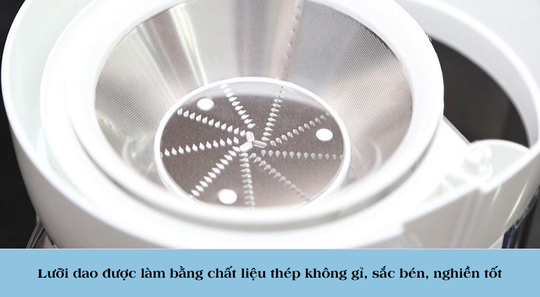 Lưỡi dao được làm bằng chất liệu thép không gỉ, sắc bén và nghiền tốt mọi nguyên liệu.