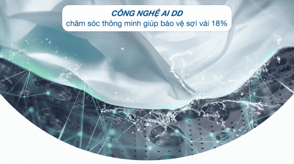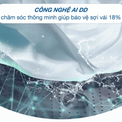 – Công nghệ AI DD: nhờ ứng dụng trí thông minh nhân tạo với khả năng nhận biết khối lượng giặt, chất liệu quần áo, từ đó đưa ra chương trình giặt tối ưu nhất, bảo vệ sợi vải tốt hơn đến 18%, tiết kiệm thời gian khi không phải lựa chọn chế độ giặt.
