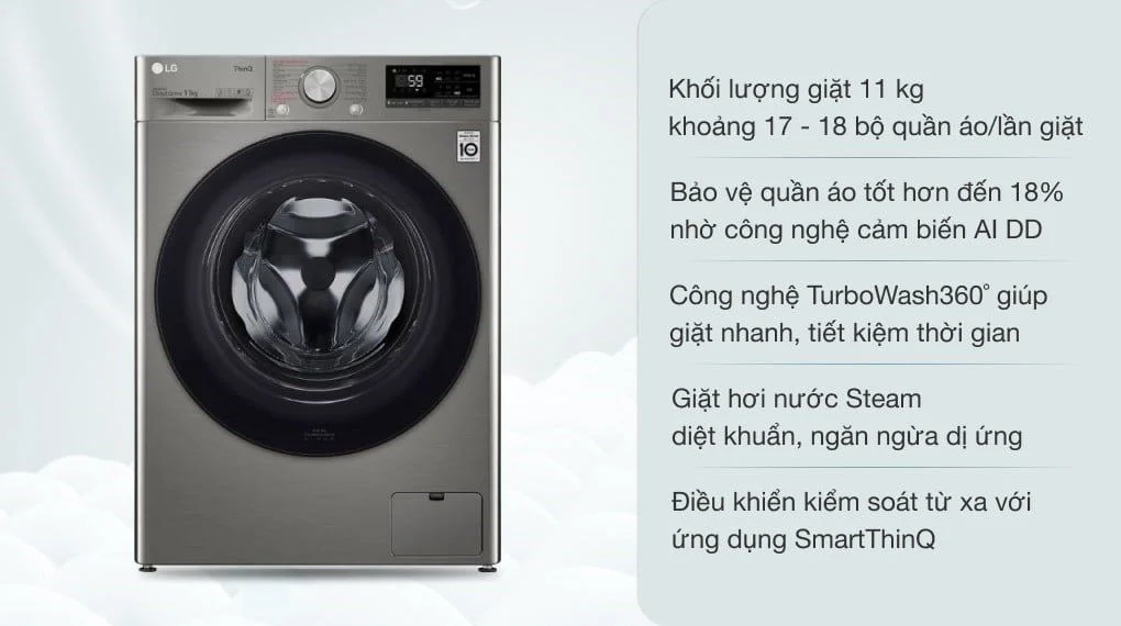 Nhìn chung, máy giặt LG Inverter 11 kg FV1411S4P là lựa chọn phù hợp cho những hộ gia đình đông người, có nhu cầu giặt nhiều quần áo trong mỗi lần giặt. Chiếc máy giặt này không chỉ được tích hợp công nghệ trí thông minh AI giúp quần áo được bảo vệ tối ưu mà còn có thiết kế hiện đại, nổi bật, rất đáng để bạn cân nhắc sử dụng.