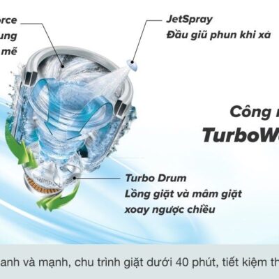 Công nghệ Turbo Drum tạo dòng nước xoáy đánh bật các vết bẩn cứng đầu