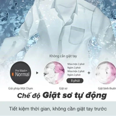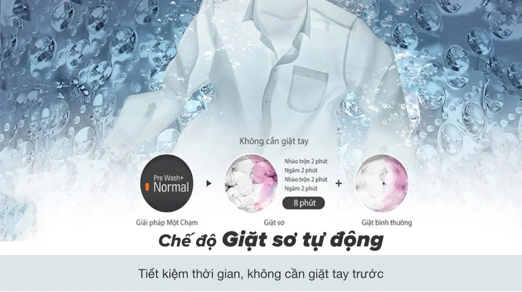 Chức năng giặt trước được trang bị trên máy giặt LG giúp xử lý vết bẩn quần áo trước khi giặt một cách nhanh chóng, dễ dàng mà không cần phải giặt, vò bằng tay. Đồng thời, chức năng này còn giúp tăng cường hiệu quả giặt sạch tối ưu hơn.