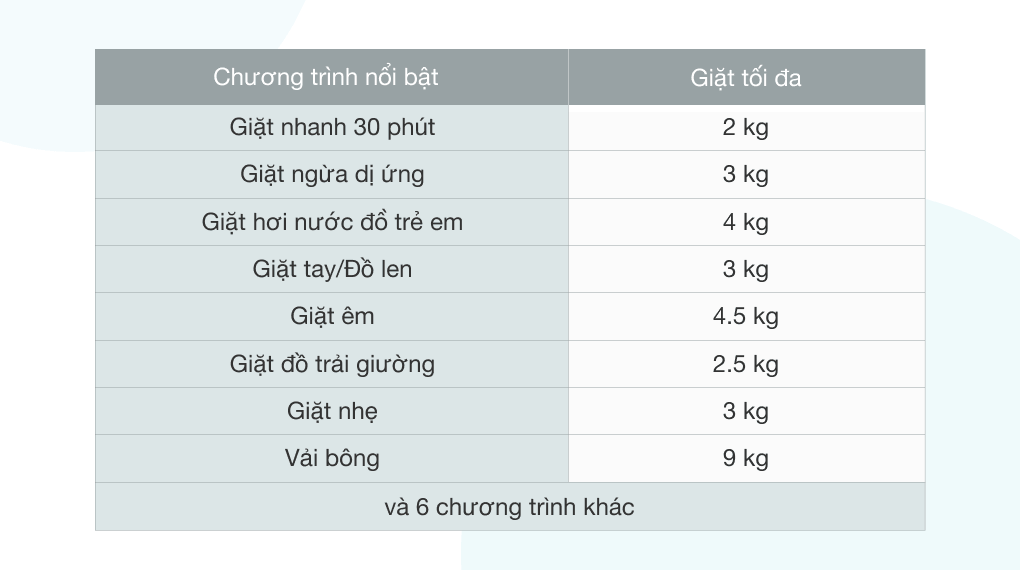 Khối lượng giặt 9 Kg, phù hợp cho gia đình từ 3 – 5 người