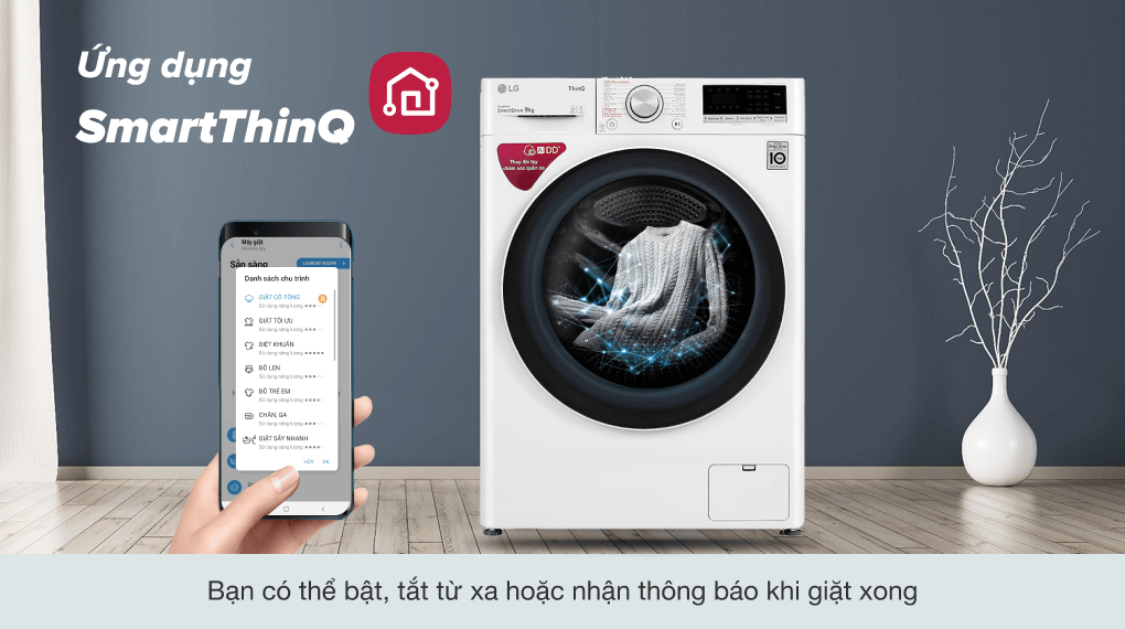 Khi kết nối ứng dụng Smart ThinQ qua điện thoại thông minh, bạn có thể biết và xử lý nhanh các lỗi thường gặp trong quá trình sử dụng máy giặt LG 9kg FV1409S4W.