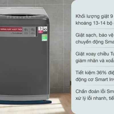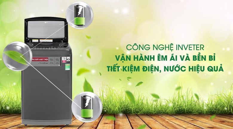 Hơn thế nữa, máy giặt LG cửa trên này còn được tích hợp công nghệ Smart Inverter góp phần tiết kiệm điện tối ưu bên cạnh khả năng giảm thiểu tiếng ồn và độ rung lắc trong quá trình hoạt động.