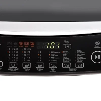 Máy giặt LG Inverter 9 kg T2109VSAB thuộc kiểu máy giặt lồng đứng cùng với bảng điều khiển nằm ở phía trước quen thuộc, chất liệu vỏ máy được làm bằng kim loại sơn tĩnh điện bền bỉ và giảm thiểu tình trạng trầy xước trong quá trình sử dụng.