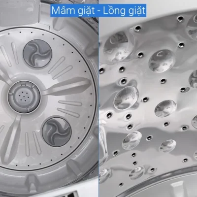 Ngoài ra, máy còn được kết hợp với công nghệ đấm nước Punch+3 tạo ra dòng nước đưa quần áo nhào trộn theo phương thẳng đứng, từ đó góp phần nâng cao hiệu quả giặt sạch quần áo.