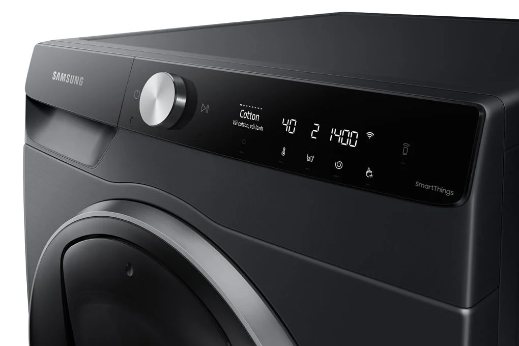 Màn hình hiển thị bằng các hướng dẫn thông minh, dễ hiểu, thuận tiện khi sử dụng và dễ dàng khắc phục khi có sự cố. Ngoài ra, bảng điều khiển có thể kết nối với ứng dụng SmartThings điều khiển máy giặt mọi lúc mọi nơi.