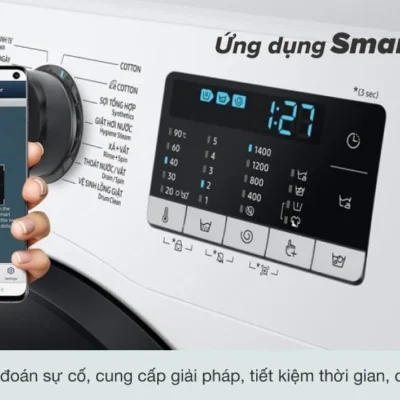 Tính năng Smart Check giúp người dùng có thể nhanh chóng biết được máy giặt của mình đang mắc phải lỗi gì thông qua điện thoại smartphone và dễ dàng khắc phục những lỗi như: nắp máy giặt không kín, đường nước vào bị rò rỉ,… mà không cần đến nhân viên bảo hành.