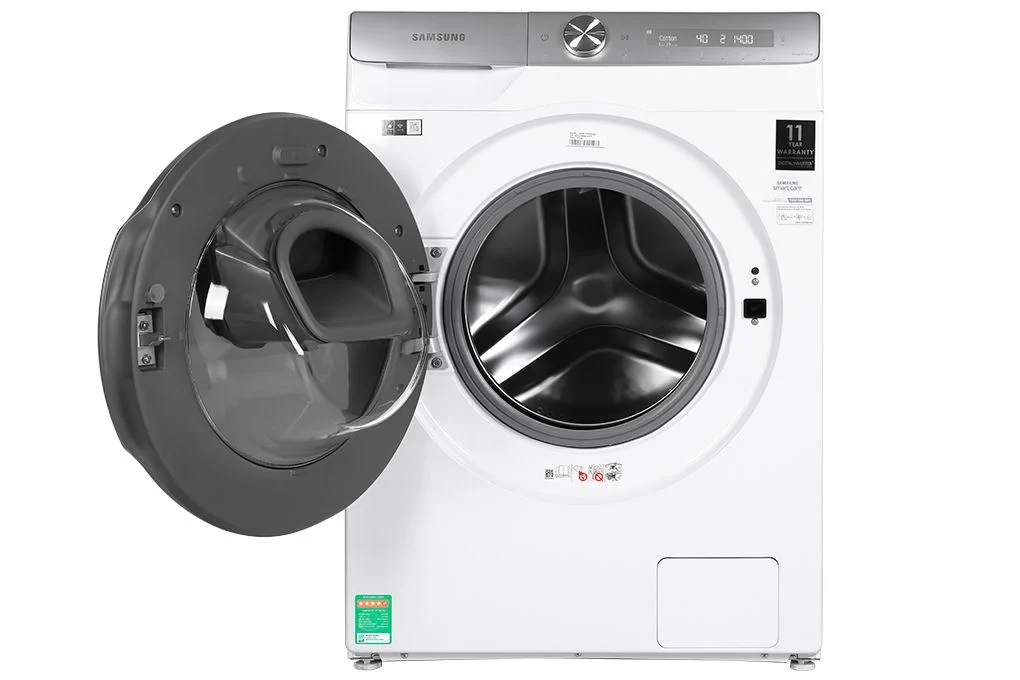 Nếu là người hay quên, gom đồ đi giặt hay bị sót, thì bạn sẽ phải hài lòng với chiếc máy giặt cửa trước này vì nó được trang bị cửa phụ Add Wash, một điểm nổi bật của máy giặt Samsung cửa ngang . Với cửa phụ này bạn có thể thêm đồ sót, nước giặt, nước xả vào bất cứ khi nào.
