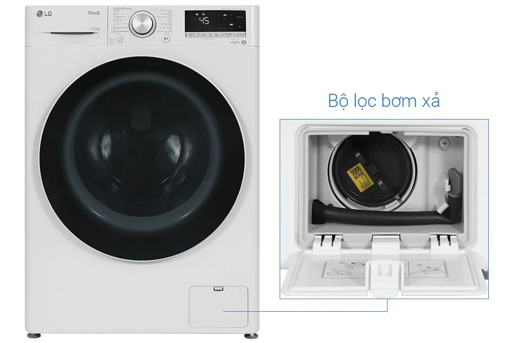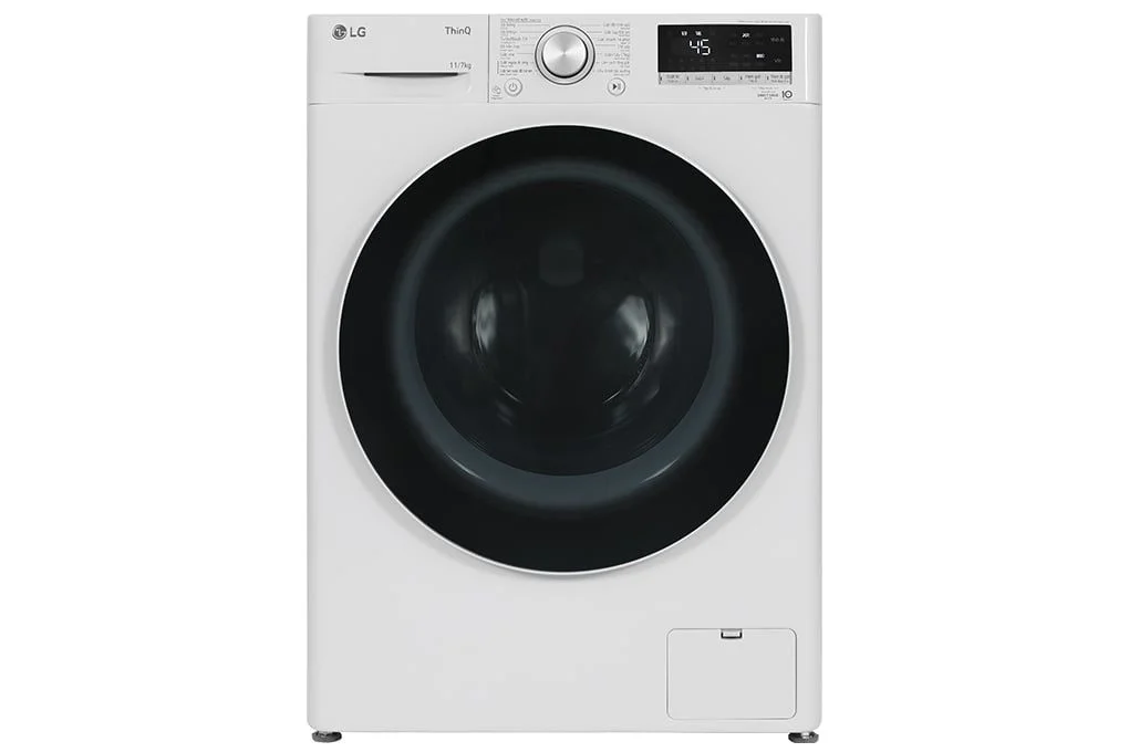 – Máy giặt LG Inverter này có thể đáp ứng khối lượng giặt 11 kg hoặc sấy 7 kg, phù hợp cho gia đình trên 7 người.