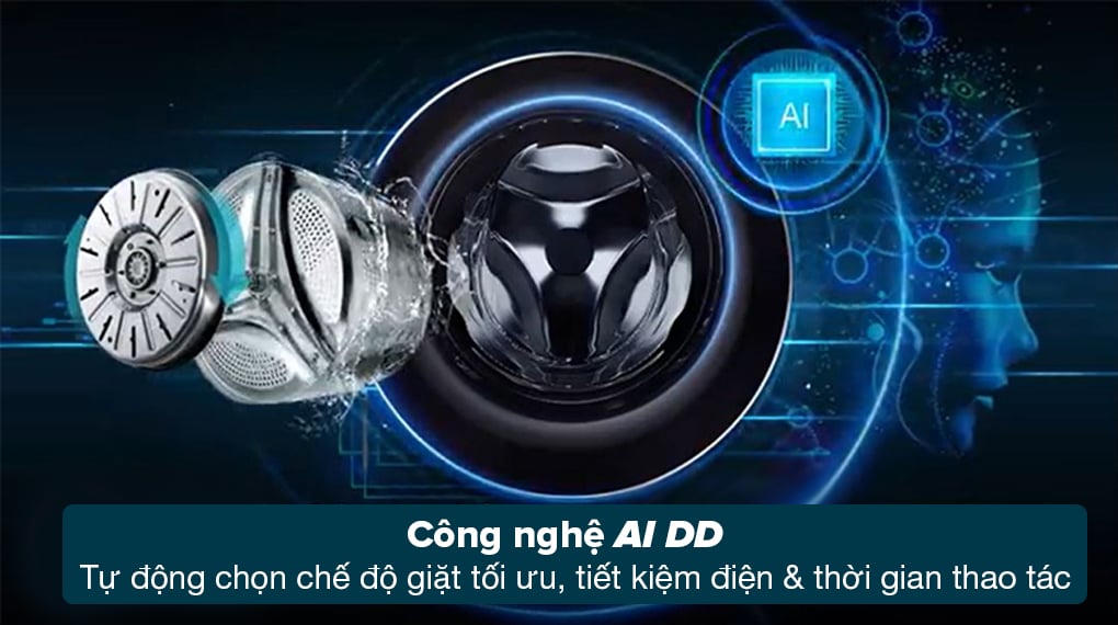 – Công nghệ AI DD: Có khả năng nhận biết khối lượng giặt và chất liệu vải, từ đó tự động lựa chọn chế độ giặt tối ưu mà bạn không cần phải chọn chế độ giặt. Vì thế, công nghệ này đảm bảo được độ bền quần áo vì có thể bảo vệ sợi vải tốt đến 18% và tiết kiệm thời gian thao tác cũng như sử dụng máy.