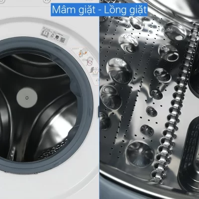 – Công nghệ giặt hơi nước diệt khuẩn Steam™: hơi nước được đưa từ dưới lên phía trên lồng giặt và sẽ len lỏi vào bên trong sợi vải của quần áo, từ đó loại bỏ vết bẩn cứng đầu dễ dàng và diệt khuẩn hiệu quả, đồng thời còn có tác dụng giảm thiểu tình trạng nhăn trên quần áo sau khi giặt.