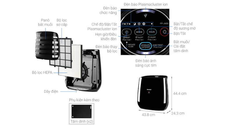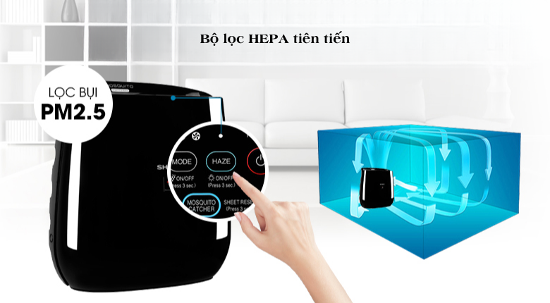 Máy lọc không khí được trang bị bộ lọc bụi thô cấp độ sơ và bộ lọc HEPA tiên tiến.