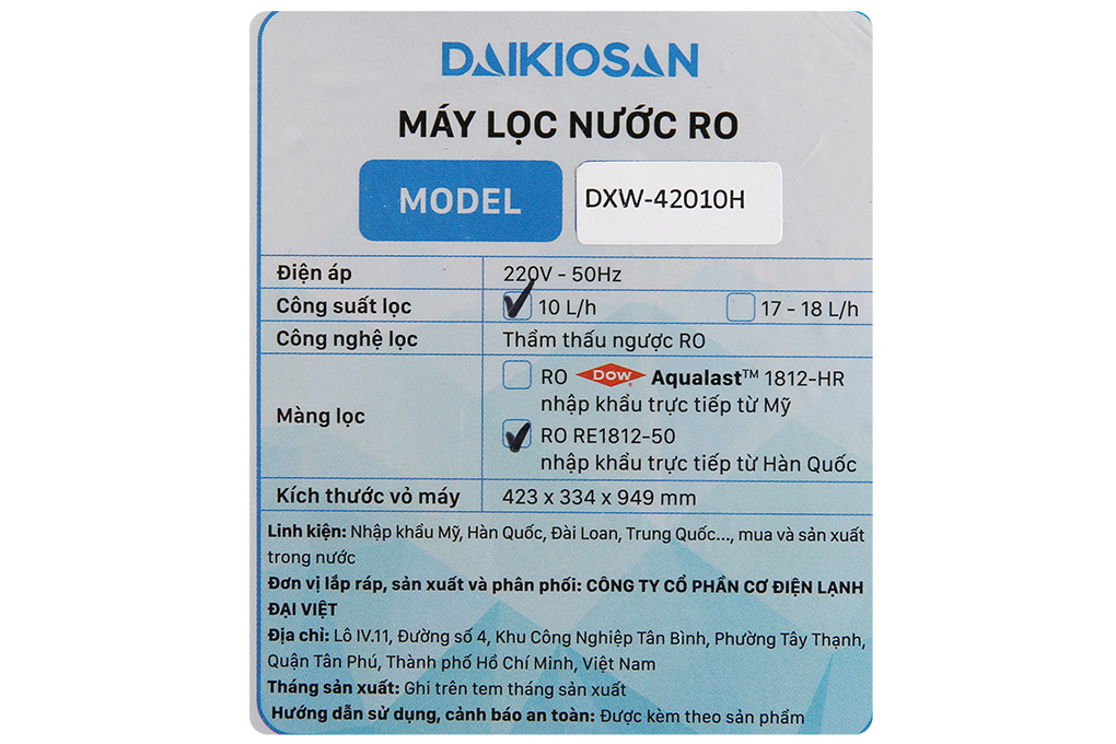 Máy lọc nước Daikiosan kiểu dáng sang trọng, bền bỉ nhờ vỏ tủ bằng thép sơn tĩnh điện và kính cường lực
