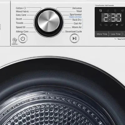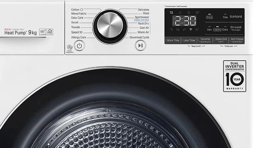 LG DVHP09W đáp ứng khối lượng quần áo sấy đến 9kg, phù hợp cho những hộ gia đình có số thành viên từ 3 – 5 người.