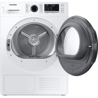 Máy sấy bơm nhiệt Samsung 9 kg DV90TA240AE/SV có thiết kế cửa trước hiện đại, gam màu trắng trang nhã sạch sẽ phù hợp với mọi không gian nội thất. Thiết kế cửa đảo chiều tiện lợi bạn có thể dễ dàng chọn hướng cửa mở dựa theo vị trí đặt máy và cách sử dụng mong muốn. Với khối lượng sấy 9 kg, chiếc máy sấy quần áo này đáp ứng tốt nhu cầu sử dụng cho gia đình có khoảng 3 -5 thành viên.