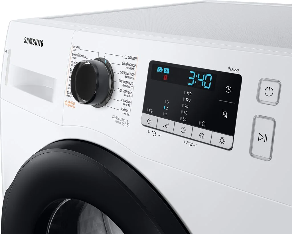 Máy sấy quần áo Samsung trang bị công nghệ Inverter hiện đại giúp máy sấy vận hành bền bỉ, giảm thiểu tiếng ồn và tiết kiệm điện năng hiệu quả. Ngoài ra, máy sấy còn có chế độ hẹn giờ tiện lợi giúp bạn chủ động thời gian sử dụng máy.
