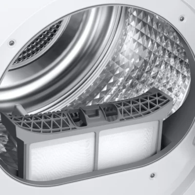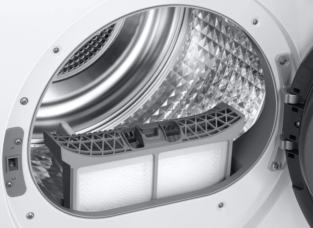 Máy sấy bơm nhiệt Samsung trang bị thiết kế bộ lọc gồm 2 màng lọc thép, giúp lọc sạch xơ vải, bụi bẩn và dễ dàng vệ sinh. Vệ sinh Bộ Lọc và Bộ Trao Đổi Nhiệt kịp thời nhờ 2 đèn báo hiệu thông minh.