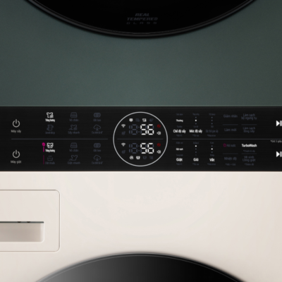 – Bộ đôi máy giặt – sấy hiện đại và tiện dụng có thiết kế đẹp mắt, tích hợp máy giặt và sấy xếp chồng lên nhau cùng nhau tạo nên 1 tháp giặt hiện đại, với gam màu trang nhã, thanh lịch.