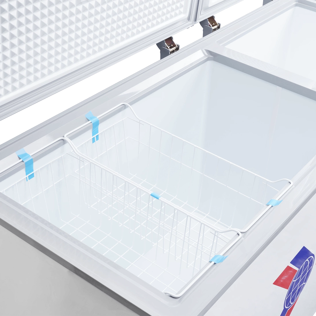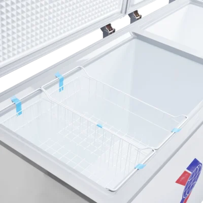 Tủ đông thiết kế 1 ngăn đông, một ngăn mát, ngăn đông có diện tích lớn hơn ngăn mát, 2 cánh mở vali, dễ sử dụng, hạn chế thoát nhiệt, tiết kiệm điện năng. Cửa tủ có khóa, an toàn sử dụng cho gia đình có trẻ nhỏ.