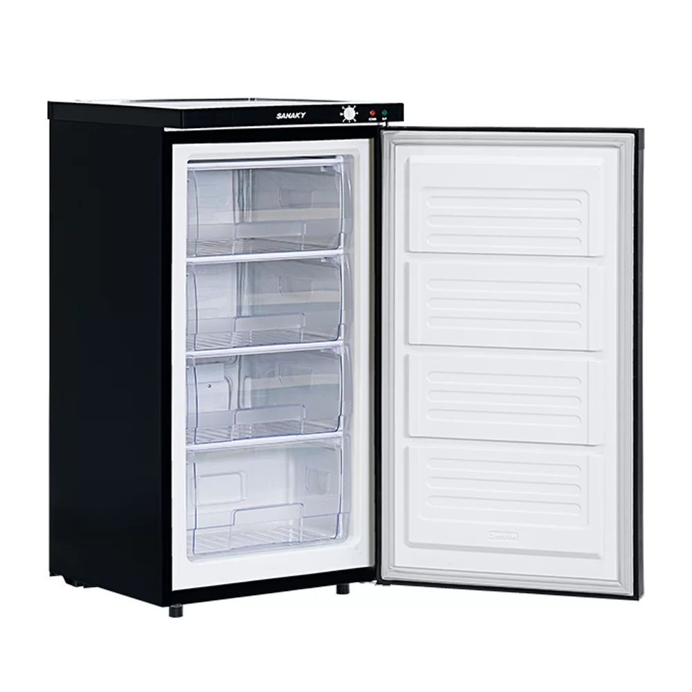 Điện áp mà tủ đông đá đứng sanaky sử dụng là điện áp chuẩn của điện lưới quốc gia, không cần sử dụng thêm ổn áp