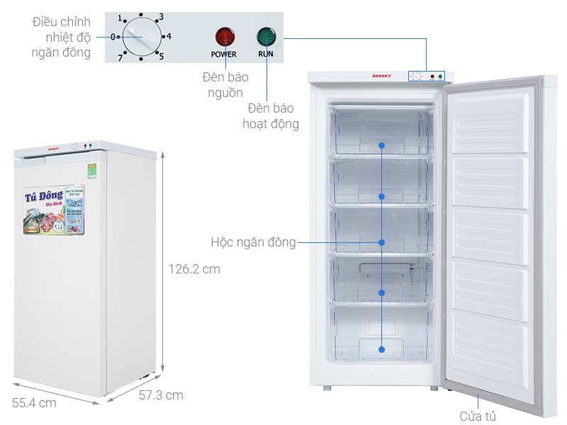 Tủ đông Sanaky VH-180VD được thiết kế 1 ngăn đông dạng đứng với 1 cánh mở, có thiết kế nhỏ gọn với kích thước 554 x 573 x 1252 (mm) cùng dung tích 150 Lít, giúp tủ có thể hài hòa với không gian người dùng một cách dễ dàng mà không tốn nhiều diện tích.
