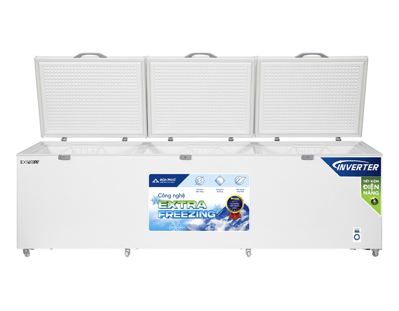- Tủ đông Hòa Phát HPF AD81190.1 Inverter là tủ đông cỡ lớn dung tích sử dụng 1190 lít, 1 ngăn đông 3 cánh