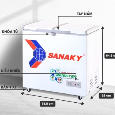 Tủ Đông Sanaky VH-2599A3 là sản phẩm tủ đông cỡ nhỏ trong dòng sản phẩm tủ đông dàn đồng công nghệ Inverter một ngăn đông hai cánh của Sanaky. Như các sản phẩm tủ đông cỡ nhỏ khác đây là sự lựa chọn của nhiều gia đình và các cửa hàng tạp hóa hay các bếp ăn và nhà hàng nhỏ. Bảo quản đa dạng các loại thịt, cá, hải sản, đồ đông lạnh,…