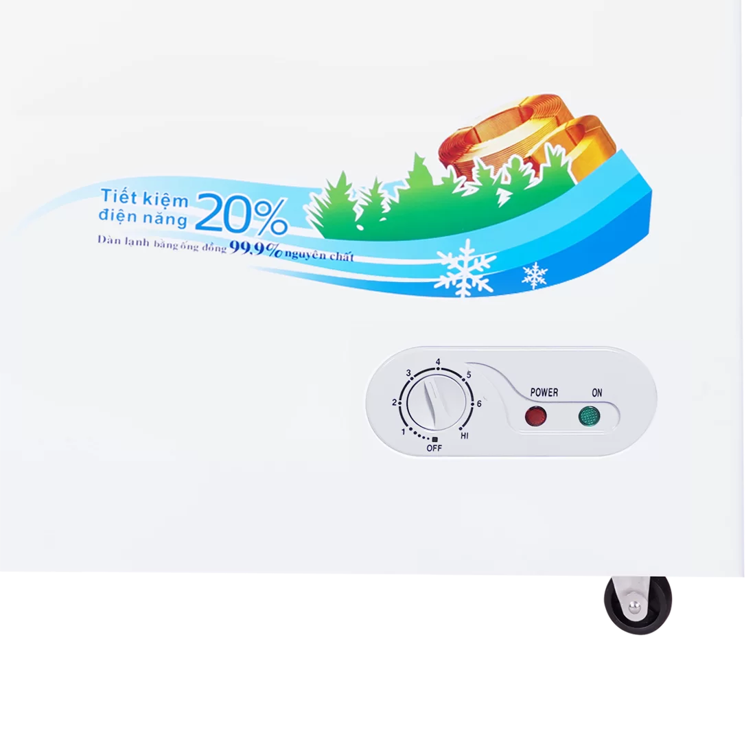 Dàn lạnh được làm bằng đồng nguyên chất giúp cho tủ đông dẫn nhiệt nhanh hơn, vận hành êm ái và tiết kiệm điện.