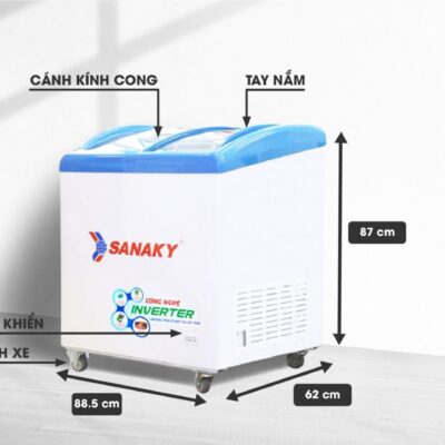 Tủ đông Sanaky VH-2899K3 là dòng tủ đông 1 ngăn 2 cánh kính cong lùa thường được sử dụng để cấp đông thực phẩm hoặc làm tủ bày bán, trưng bày thực phẩm đông lạnh. Tủ có thiết kế dạng chữ nhật nằm ngang với dung tích tầm trung phù hợp sử dụng tại các nhà hàng, cửa hàng ăn nhỏ hoặc tại các hộ gia đình, siêu thị,…
