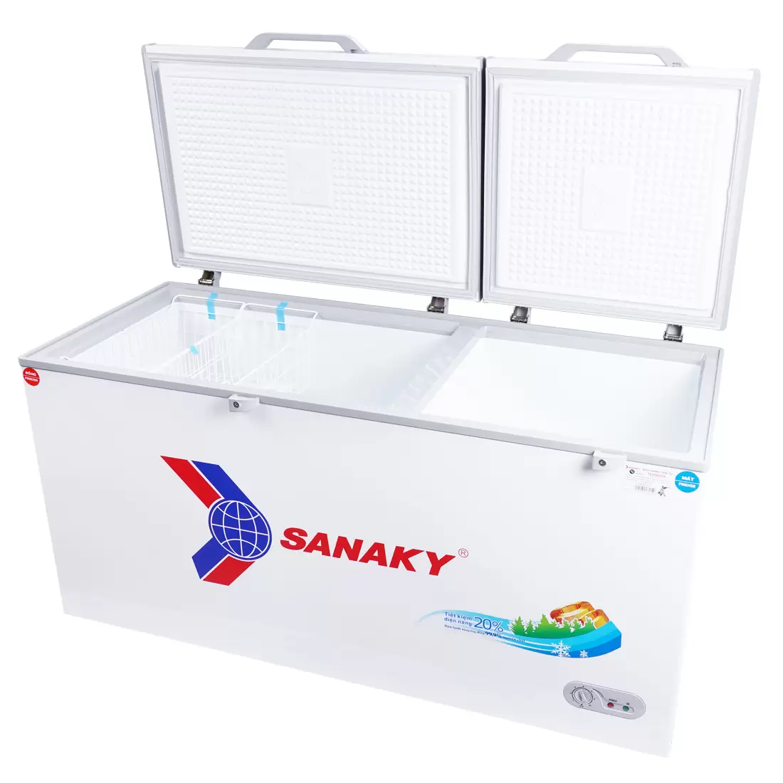 Tủ đông Sanaky VH-6699W1 có thiết kế hiện đại với 2 cửa độc lập, giúp bạn sắp xếp và lấy thực phẩm một cách dễ dàng, đồng thời hạn chế thất thoát hơi lạnh gây lãng phí điện năng.