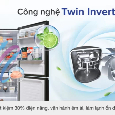 Nhờ khả năng thay đổi tốc độ chạy của quạt và máy nén theo nhu cầu hoạt động của tủ lạnh, công nghệ Twin Inverter không chỉ giúp tủ được vận hành êm, hạn chế tiếng ồn mà nó còn góp phần duy trì nhiệt độ làm lạnh ổn định, cũng như tiết kiệm đáng kể điện năng cho gia đình bạn.
