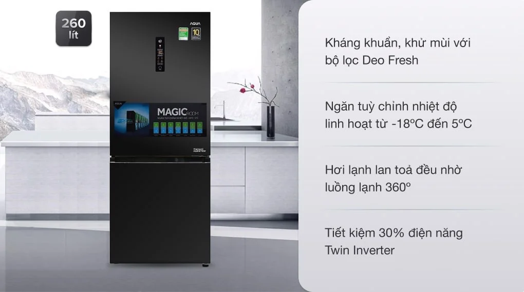 Nếu gia đình bạn có 2 – 3 thành viên và mong muốn tìm một chiếc tủ lạnh 2 cửa có kiểu dáng ngăn đá dưới phù hợp thì chiếc tủ lạnh Aqua 260 lít này sẽ là một sự lựa chọn đáng cân nhắc.