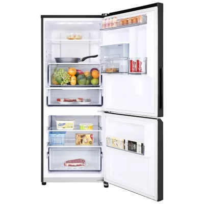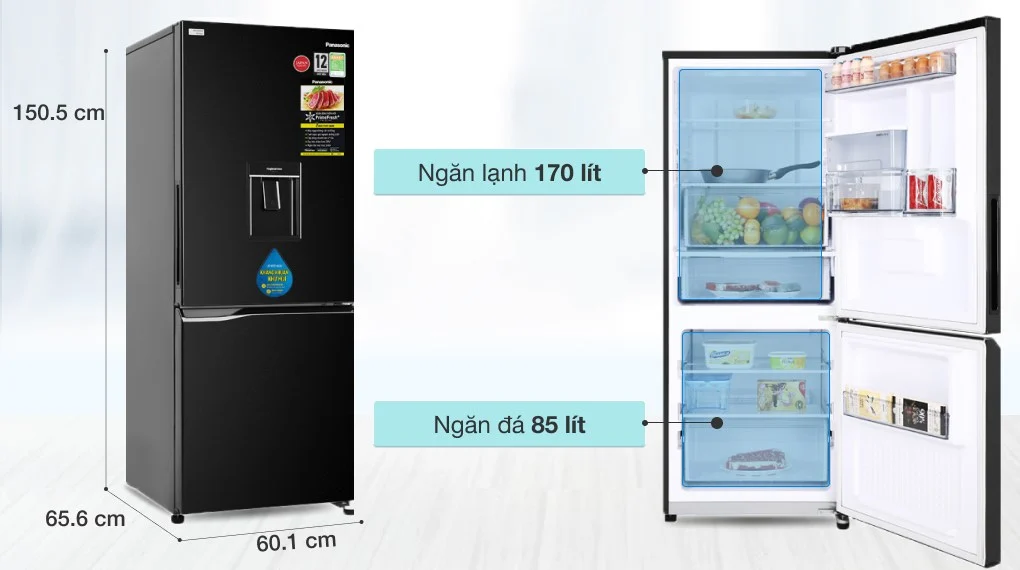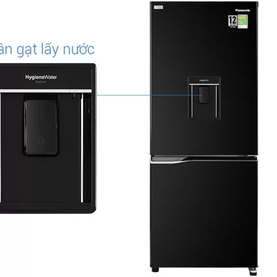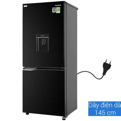 Tủ lạnh Panasonic 2 cánh này mang gam màu đen sang trọng, thanh lịch. Thiết kế độc đáo với ngăn đá bên dưới, hiện đại cho không gian nội thất mà nó còn mang lại sự tiện lợi, giúp người sử dụng có thể dễ dàng lấy thực phẩm ở ngăn mát mà không phải khom cúi nhiều lần.
