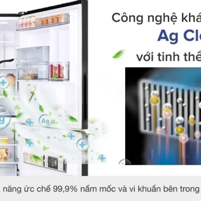 Tủ lạnh này được trang bị công nghệ kháng khuẩn Ag Clean với tinh thể bạc Ag+ có chức năng kháng khuẩn, nấm mốc, loại bỏ các mùi hôi tạo ra ảnh hưởng đến sức khỏe, trả lại bầu không khí sạch, tươi mát mang lại cảm giác thoải mái cho bạn khi sử dụng tủ lạnh.