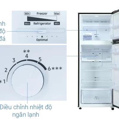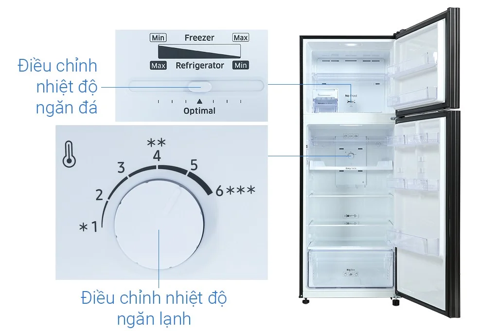 – Mẫu tủ lạnh Samsung này được thiết kế nút xoay giúp điều chỉnh nhiệt độ nằm ở bên trong ngăn mát, trong khi ngăn đá thì được thiết kế dạng nút gạt sang trái phải rất dễ thao tác.