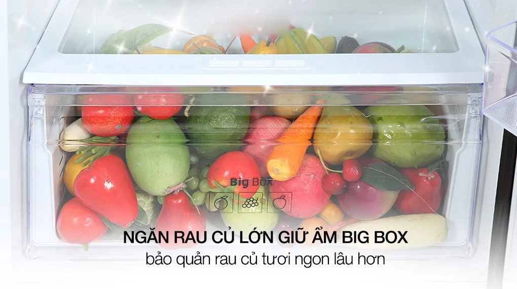 – Ngăn rau củ lớn Big Box được thiết kế dung tích lớn và có khả năng giữ ẩm tối ưu, giúp cho rau củ tránh bị héo trong suốt thời gian bảo quản.