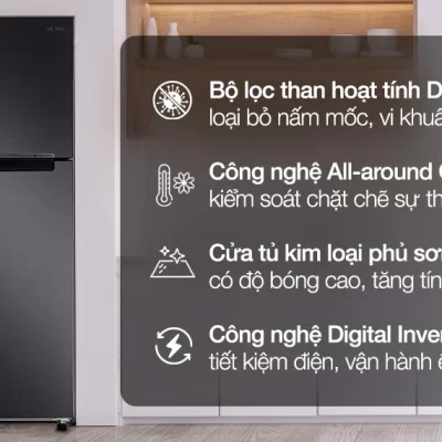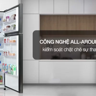 – Công nghệ All-around Cooling giúp luồng khí lạnh lan tỏa đều đến mọi ngóc ngách bên trong mỗi ngăn tủ, đồng thời còn có khả năng kiểm soát chặt chẽ sự thay đổi nhiệt độ để giúp thực phẩm được bảo quản ở độ lạnh tối ưu nhất.
