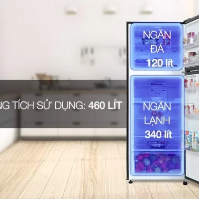– Dung tích sử dụng 460 lít, phù hợp với gia đình từ 4 – 5 người sử dụng.