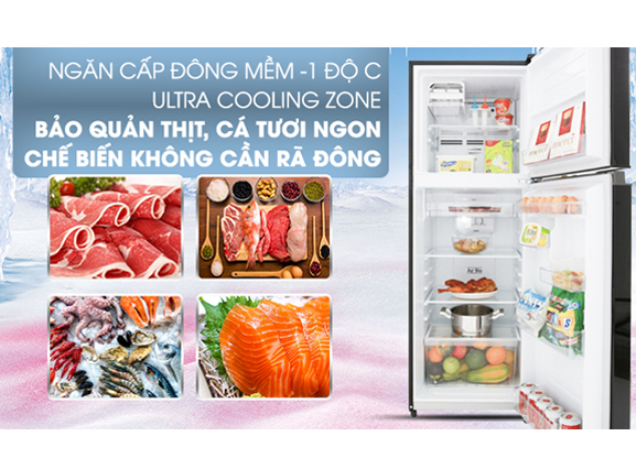 Ngăn cấp đông linh hoạt Ultra Cooling Zone trên tủ lạnh sẽ làm đông nhẹ mặt ngoài thực phẩm, giữ thực phẩm luôn tươi ngon đầy dưỡng chất, bạn chỉ cần lấy ra và chế biến sử dụng ngay mà không cần phải rã đông thực phẩm. Ngăn này có nắp đậy, tránh tình trạng lẫn mùi với các thực phẩm khác trong tủ.