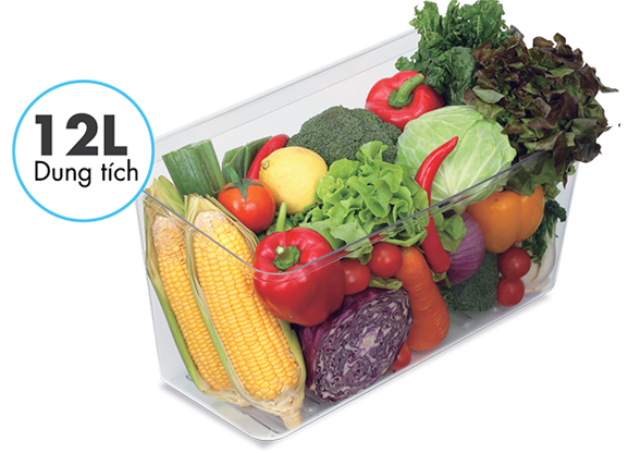 Ngăn chứa rau quả được thiết kế rộng để bạn có thể tích trữ rau củ quả nhiều hơn mà vẫn đảm bảo giữ được độ tươi ngon và hàm lượng chất dinh dưỡng lâu nhất, nhờ khả năng giữ ẩm cực tốt của ngăn.