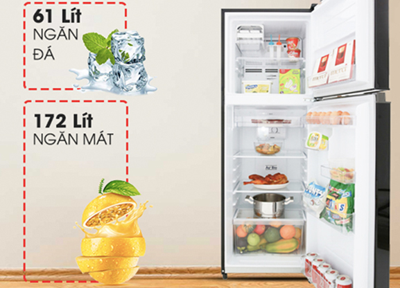 Tủ lạnh Toshiba sở hữu dung tích 233 lít, giúp bạn có thể thoải mái lưu trữ lượng thực phẩm cho gia đình từ 2 – 3 người.